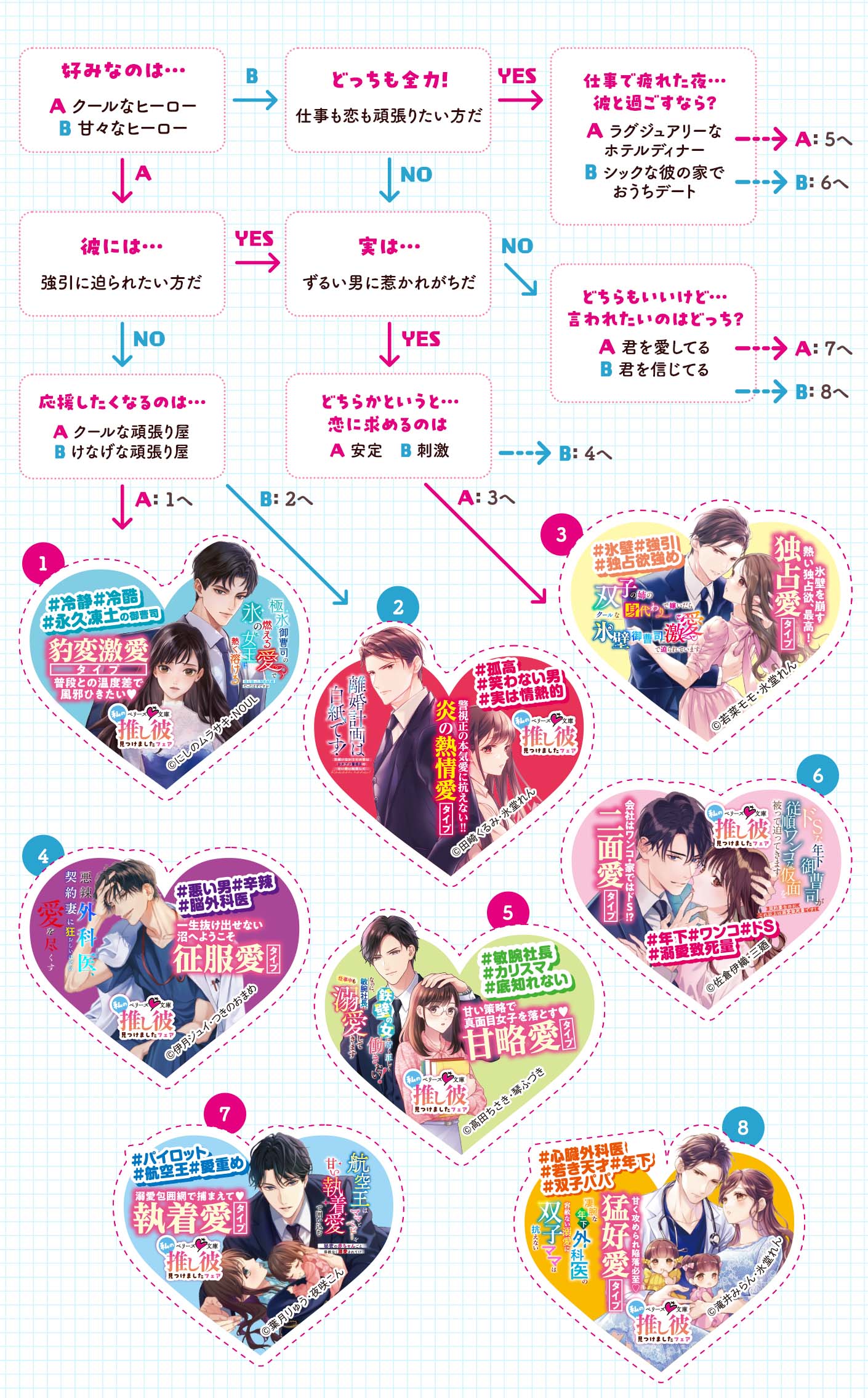 素敵な彼が多すぎて選べない!?そんなあなたにはチャート図診断!いくつかの質問に答えるだけで、ぴったりな彼がみつかる!