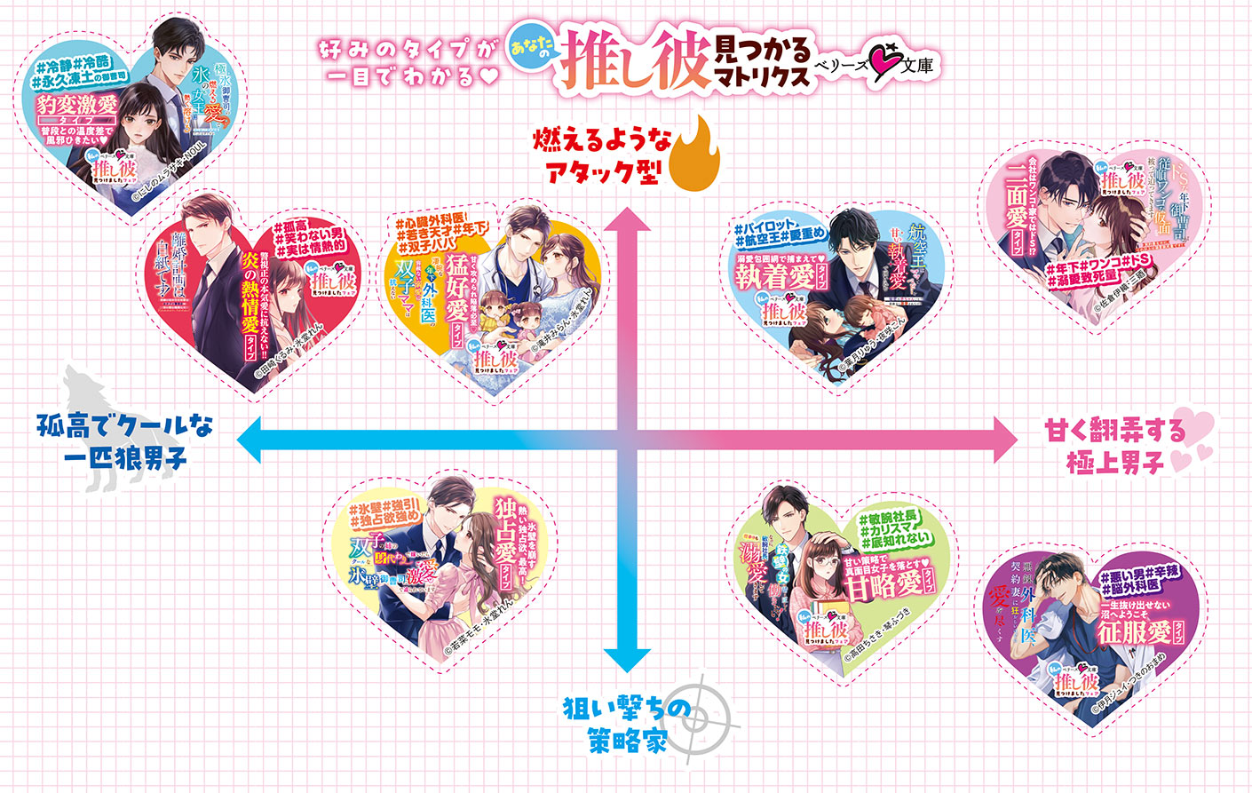 好みのタイプがはっきりしているあなたには、一目でわかるマトリクス図から!好みの彼が見つかったら、下の作品情報をチェック♪