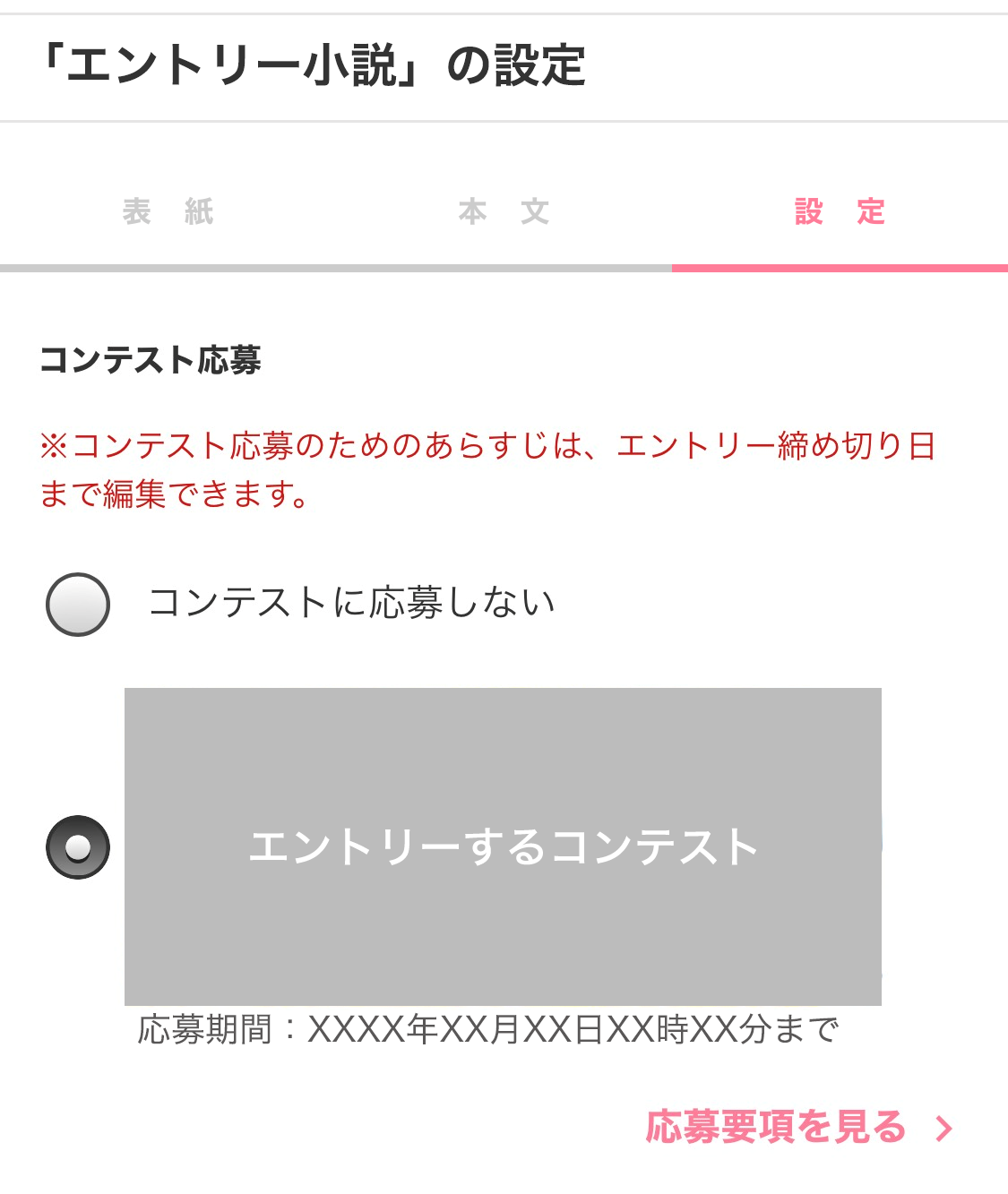 | 応募方法 | STEP1 第1話をベリーズカフェに投稿し、該当作品の【作品編集】から、【設定】画面のコンテスト応募、スターツ出版小説投稿サイト合同企画「第2回1話だけ大賞」ベリーズカフェ会場を選択します。 STEP2